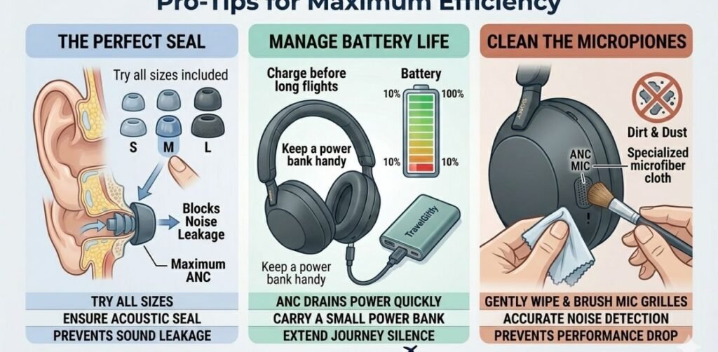 - Manage Battery Life: ANC drains power quickly. Always carry a small power bank for long-haul journeys.