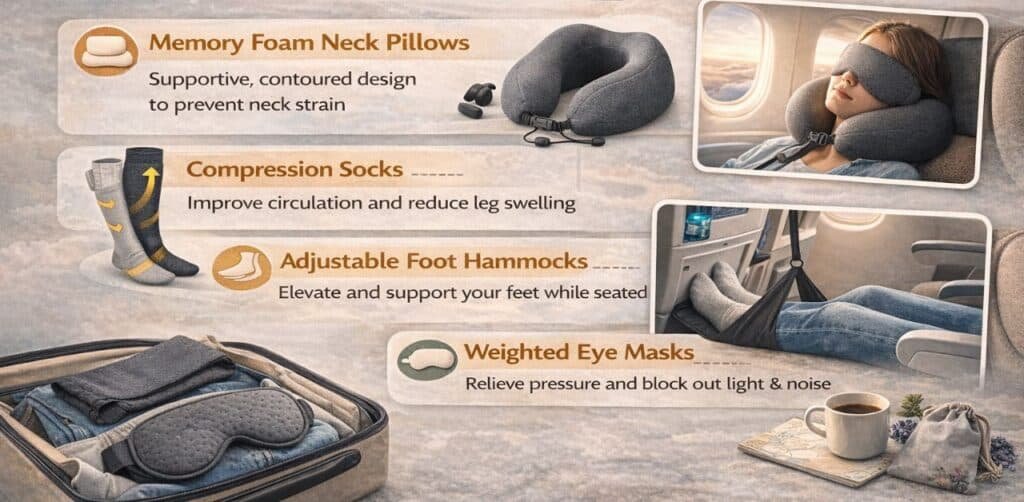 - Adjustable Foot Hammocks: These clip onto the tray table, allowing travelers to elevate their feet.
