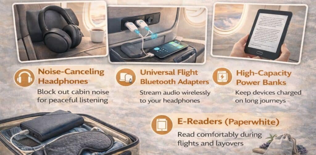 - High-Capacity Power Banks: Even with seat-back USB ports, a dedicated fast-charging battery is a lifesaver.