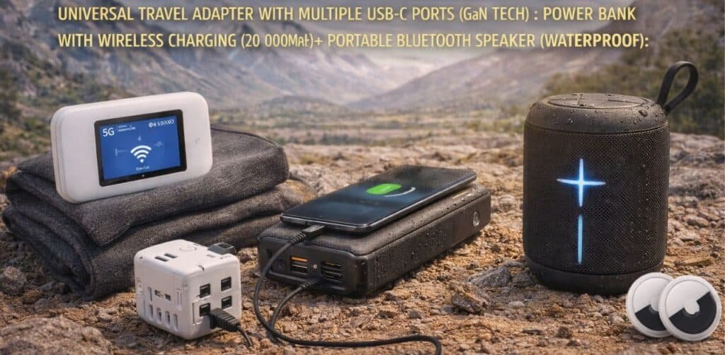 - Universal Travel Adapter with Multiple USB-C Ports (GaN Tech): The 2026 standard. A compact adapter that works in nearly every country and can fast-charge phones, tablets, and even laptops simultaneously.