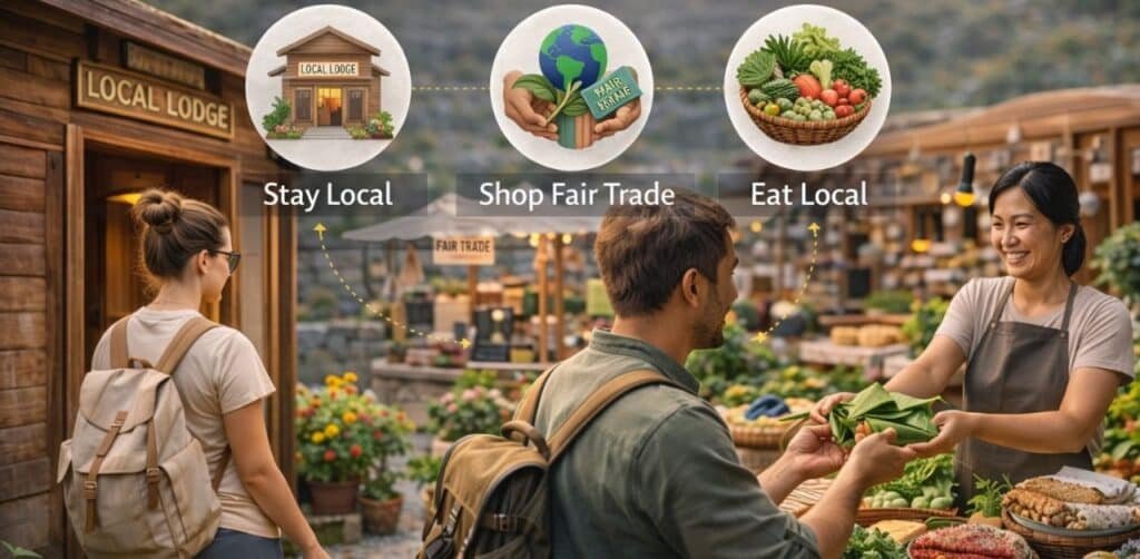 • Stay Local: Choose boutique hotels or homestays that employ local staff.