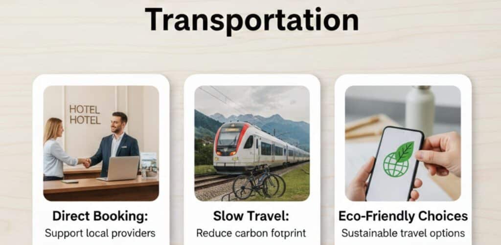 • Slow Travel: Opt for trains or buses over short-haul flights whenever possible to lower your carbon footprint.